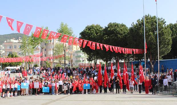 Anamur’da 23 Nisan Ulusal Egemenlik ve Çocuk bayramı kutlamaları, eski Cumhuriyet meydanından Anamur Cumhuriyet Anadolu Lisesi bando takımının yeni Cumhuriyet meydanına kadar süren yürüyüşü ile tören başladı.