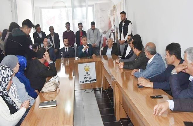 Bozyazı AK Parti İlçe Teşkilatı’nda gerçekleştirilen programda, Kısa süre önce AK Parti İlçe Başkanlığı görevine atanan Av. Harun Güğül ve yönetim kurulu üyelerine başarılar dileyerek, “Yerel seçim çalışmalarında son günlere yaklaştık, çalışmalarımızı hız kesmeden sürdürelim ve Mersin Büyükşehir Belediyesi başta olmak üzere 13 ilçeyi Cumhur İttifakına kazandıralım” dedi.