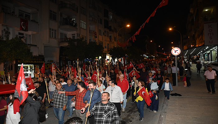 Cumhuriyetin kuruluş yıl dönümü anısına saat 19:23’te başlatılan fener alayında, Cumhuriyetin 102. yıldönümü olması nedeniyle 102 metrelik dev Türk Bayrağı ve 102 meşale taşındı.