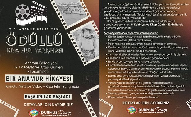 Anamur Belediyesi tarafından bu yıl 6.’sı düzenlenecek olan Edebiyat Günleri kapsamında kısa film yarışması başvuruları başladı.