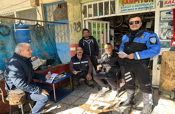 Toplum Destekli Polislik Büro Amirliğine bağlı polis sanayi esnafı ile bire bir görüşerek sanayi esnafını internet ve telefon dolandırıcılığına karşı