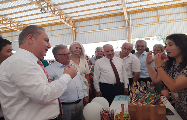 Stantları gezerek ürünler hakkında usta öğreticilerden bilgi alan Kaymakam Bilal Bozdemir, ürünleri tek tek inceledi, hem de usta öğreticilerden ürünler hakkında bilgi aldı.