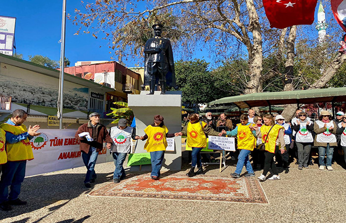KESK (Eğitim Sen, SES sağlık emekçileri sendikası), CHP, iyi parti, sol parti, ADD, TİP, TKP, Merçed, Tema, Anamur temsilciliklerinin de destek verdiği eylem,İlçenin an hareketli mevkilerinden Çavuşpınarı parkında toplanan yüzlerce emeklinin , ekonomik sıkıntısını,Anamur KESK platformu Ses Temsilcisi Hamit Durna dile getirdi.