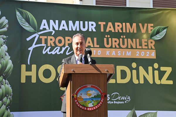Anamur’da muz üretiminin yoğun olarak gerçekleştirilmesinde 57. hükümetin Tarım ve Köyişleri Bakanı Hüsnü Yusuf Gökalp’in büyük emeği olduğunu ifade eden Başkan Deniz; “İlçemizin ekonomik gelişmişlik açısından ülkemizin en üst sıralarında bulunmasında, muz üretiminin bu denli yoğun gerçekleştirilmesinde ve Muzun Başkenti Anamur’un tüm ülke tarafından tanınmasında 57. hükümetin Tarım ve Köyişleri Bakanı, değerli hocam Hüsnü Yusuf Gökalp’in büyük emekleri var. 2000’li yıllarda bir grup arkadaşımızla sayın bakanımızı ziyaret ederek ithal muza uygulanan gümrük vergisinin arttırılmasını ve Anamurlu üreticilerimizin teşviklerle desteklenmesini talep ettiğimizde değerli bakanımız yetkisini en üst seviyede kullanarak ithal muzda uygulanan gümrük vergisini en üst seviyeye taşımıştı. Eğer bugün ilçemizde ekonomik olarak bir gelişme kaydedilmişse bu sayın bakanımız sayesindedir. Kendisine ve tüm katılımcılarımıza fuarımızın açılışına katılarak bizleri yalnız bırakmadığı için teşekkür ediyorum. Anamur Belediyesi olarak, vatandaşımızın ürettiği ürünlerin kalitesini nasıl arttırır, daha iyi nasıl tanıtılır ve pazarlaması yapılır diye çalışmalar yürütüyoruz. Bu amaçla bir ay önce Ankara büyükşehir Belediye Başkanımız sayın Mansur Yavaş ile görüştüm. Anamur’da üretilen ürünlerin Ankara’da pazarlanması ve satışının yapılması amacıyla bir çalışma gerçekleştireceğiz. Yine geçen hafta Kuzey Kıbrıs Türk Cumhuriyeti’ne giderek Cumhurbaşkanımız sayın Ersin Tatar ve ilgili bakanlarımızla görüşme imkanı buldum. İnşallah Anamur’da yetişen sebze ve meyvelerimizin KKTC’de satışını yaparak, hem KKTC’li kardeşlerimizin uygun fiyata ürünlere erişmesini, hem de Anamurlu üreticilerimizin emeklerinin karşılığını değerinde almasını sağlayacağız. Hem ziraat mühendisi, hem belediye başkanı hem de bir üretici olmam nedeniyle Muzun Başkenti Anamur’da üretilen tüm ürünlerin daha iyi koşullarda satışının yapılmasını ve üreticilerimizin yüzünün gülmesini istiyor ve buna yönelik çalışmalar gerçekleştiriyoruz. Anamur Tarım ve Tropikal Ürünler Fuarı’nın ilçemize ve hemşehrilerimize hayırlı uğurlu olmasını diliyorum.” dedi.