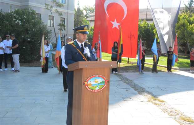 Cumhuriyet Meydanı’nda Atatürk Anıtı’na çelenklerin sunumlarıyla başlayan programda saygı duruşunda bulunuldu, İstiklal Marşı okundu.