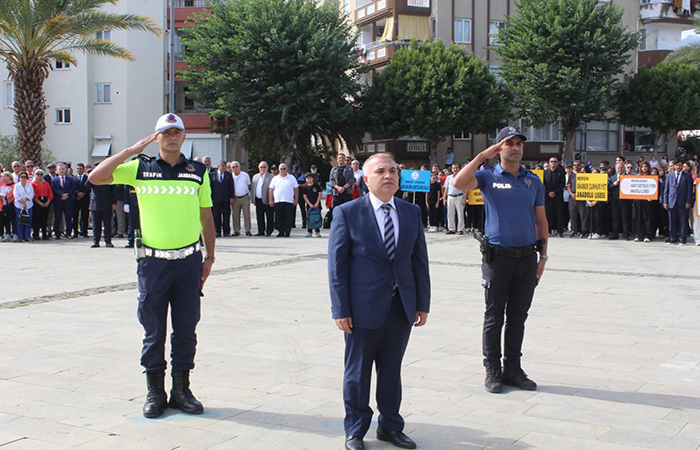 Törende Anamur Kaymakamı Kemal Duru, Garnizon Komutanı Albay Serhan Güngör ve Anamur Belediye Başkanı Durmuş Deniz, Atatürk Anıtı’na çelenk sundu. Saygı duruşu ve İstiklal Marşı’nın okunmasının ardından tören sona erdi.