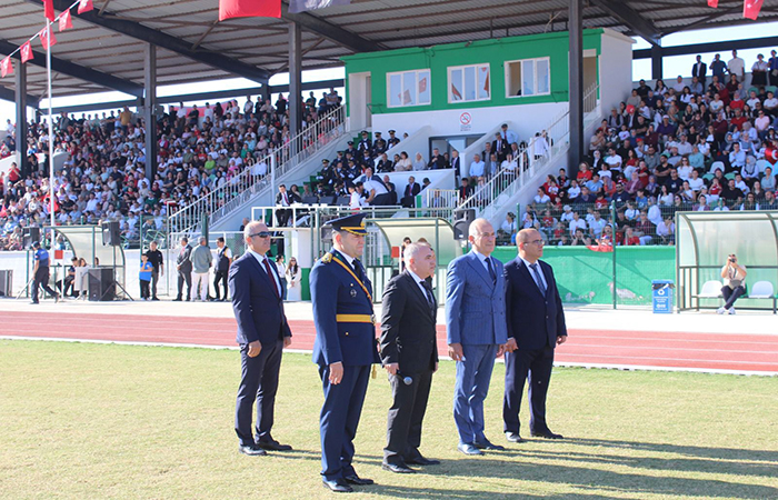 Kutlamalar Atatürk Şehir Stadı’nda düzenlenen programla devam etti. Törene Kaymakam Kemal Duru, Garnizon Komutanı Albay Serhan Güngör, Belediye Başkanı Durmuş Deniz ve Cumhuriyet Başsavcısı Tanju Çatlı’nın yanı sıra çok sayıda vatandaş katıldı.