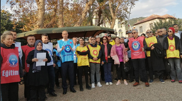 Çavuşpınarı Parkı’nda bir araya gelen eğitim sendikaları ortak kınama yayınladı.