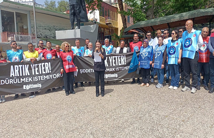 Cumhuriyet Meydanında bir araya gelen sendika üyeleri hep bir ağızdan “ eğitim kurumlarında yaşanan şiddet olaylarını protesto ettiler.