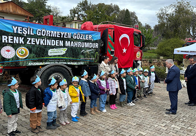 Anamur’da Orman Haftası etkinlikleri kapsamında düzenlenen programda, öğrencilere fidan dağıtılarak doğa sevgisi ve çevre bilincinin önemi vurgulandı. Anamur Orman İşletme Müdürlüğü tarafından Orman Haftası etkinlikleri kapsamında öğrencilere yönelik fidan dağıtım programı gerçekleştirildi. Programa Kaymakam Kemal Duru, Anamur Orman İşletme Müdürü Selahattin Yıldırım ile kurum personeli katıldı. Program kapsamında öğrencilere fidan dağıtımı yapılarak ormanların korunması, geliştirilmesi ve ağaçlandırma çalışmalarının önemi anlatıldı. Çevre bilincinin küçük yaşlarda kazandırılmasının gerekliliğine dikkat çekilen etkinlikte, bu tür faaliyetlerin gelecek nesillere daha yaşanabilir bir çevre bırakılmasına katkı sağladığı ifade edildi. Etkinlikte öğrencilerin yoğun ilgi gösterdiği gözlemlenirken, gerçekleştirilen faaliyetlerin çocukların doğayla bağ kurmalarına ve çevreye duyarlı bireyler olarak yetişmelerine katkı sunduğu değerlendirildi.