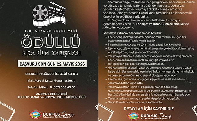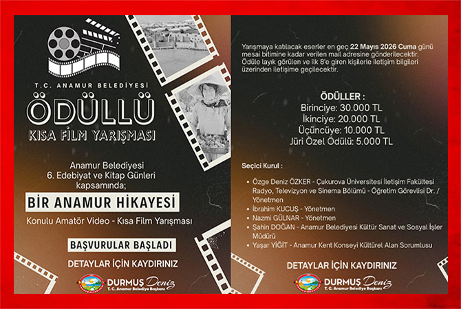 Anamur Belediyesi 6. Kitap Günleri etkinlikleri kapsamında düzenlenecek, Kısa Film Yarışması’na katılabilir, büyük ödülün sahibi olabilirsiniz.