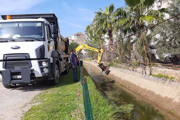 Kanallarda su akışına engel olan toprak birikintisi, otlar ve ağaç dalları temizleniyor. Çalışmalarını yoğun bir şekilde sürdüren ekipler, kanal boyunca iş makinaları ve makinaların giremediği yerlerde insan gücüyle temizleme çalışması yapıyor.