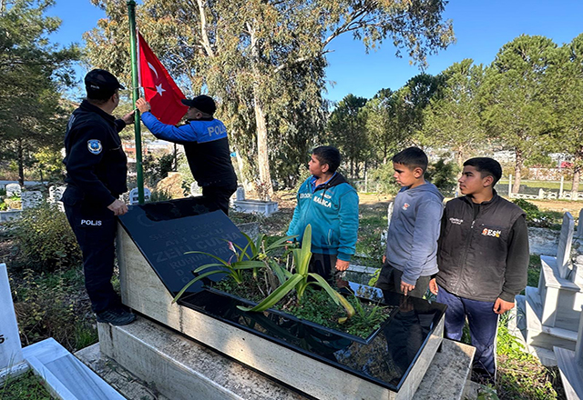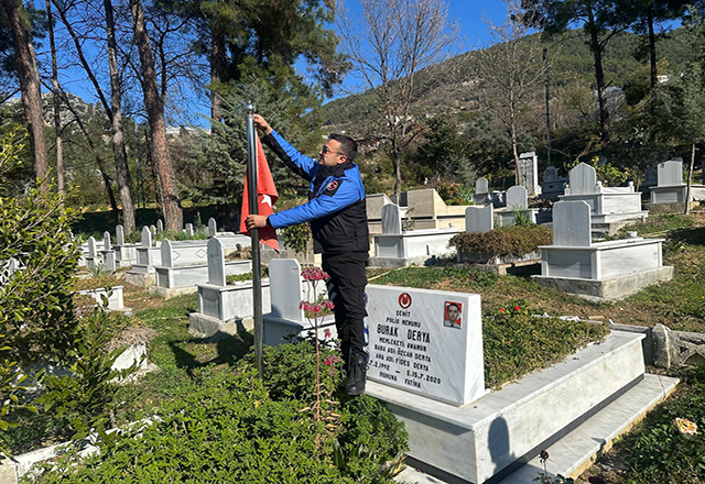 Şehit kabirlerini ve etrafında temizlik yapan, olumsuz hava koşullarından yıpranan bayrakların yerine yenilerini takan, Anamur İlçe Emniyet Müdürlüğü Toplum Destekli Polislik Büro Amirliğinde görevli polisler şehit mezarları başında dua okudu.Anamur İlçe Emniyet Müdürlüğü Toplum Destekli Polislik Büro Amirliği polisleri, şehitlerimizin aziz hatıralarına her zaman sahip çıkacaklarını belirttiler.