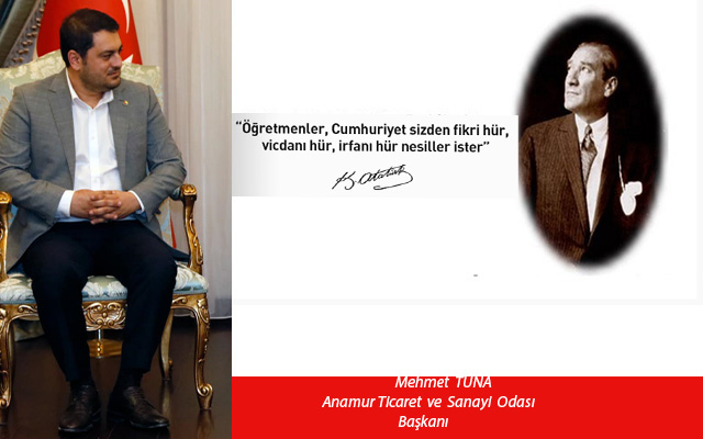 Anamur Ticaret ve Sanayi Odası Yönetim Kurulu Başkanı Mehmet Tuna, 24 Kasım Öğretmenler Günü’nde anlamlı bir kutlama mesajı yayımladı.