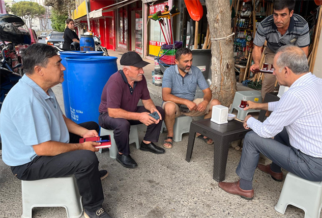 Şehir merkezinde bulunan esnaflarla bir araya gelen Başkan Deniz; “Sabah belediyedeki mesaimize başlamadan şehir merkezinde bulunan esnaflarımızı ziyaret ederek hem hayırlı işler dileğinde bulunduk hem de esnaflarımızla belediyeden ekonomiye, genel siyasetten sosyal yaşama kadar hemen her konu da sohbet etme imkanı bulduk.