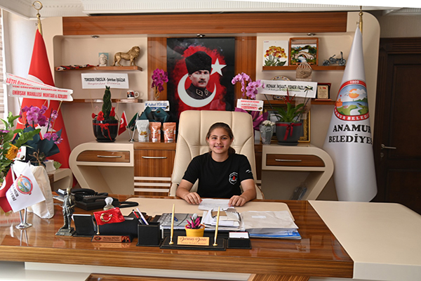 23 Nisan Ulusal Egemenlik ve Çocuk Bayramı nedeniyle geleneksel olarak gerçekleştirilen devir teslim töreninde Anamur Belediye Başkanı Durmuş Deniz’in koltuğuna Anamur Ortaokulu 6. sınıf öğrencisi Çilek Oktan devraldı. Başkanlık koltuğuna oturan Oktan; ”Hepimizin bildiği gibi Mustafa Kemal Atatürk 19 mayıs 1919’da Samsun’a çıkarak Kurtuluş Savaşı’nı başlatmıştır. 23 Nisan 1920’de de Türkiye Büyük Millet Meclisi’ni açmış ve bugünü tüm dünya çocuklarına bayram olarak armağan etmiştir. Öğrenci arkadaşlarımı temsilen bulunduğum bu makamdan güzel ülkemdeki tüm çocukların bayramını kutluyor herkese sevgilerimi sunuyorum” dedi.