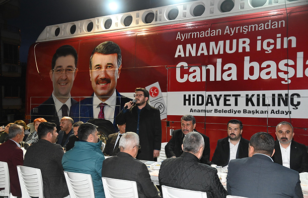 Seçim çalışmaları kapsamında Akdeniz Mahallesinde iftarda vatandaşlarla buluşan, mevcut Anamur Belediye Başkanı ve Cumhur İttifakı Belediye Başkan Adayı Hidayet Kılınç , “ İlk 5 yılda olduğu gibi yeni dönemde de gerçek belediyeciliği merkezden kırsala, Anamur’umuzun dört bir yanına ulaştıracağız ”dedi