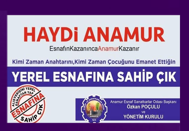 Anamur Esnaf Odası Başkanı yönetim Kurulu adına halkına çağrıda bulunarak, ‘Alışverişlini yerel esnaftan yap, esnafına sahip çık’ dedi.