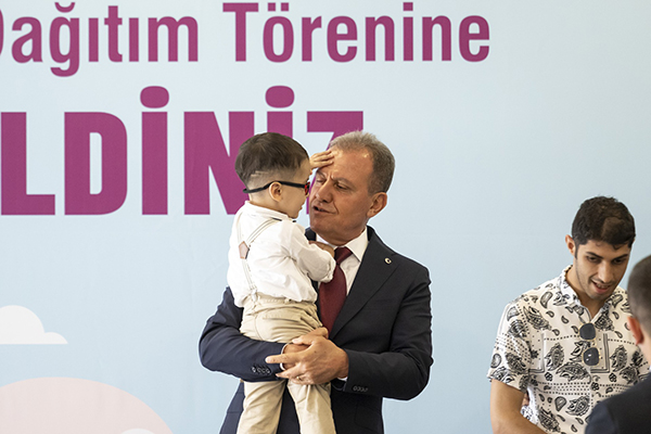 Konuşmaların ardından Büyükşehir bünyesinde hizmet veren Otizm Merkezi, Engelsiz Yaşam Merkezi ve Engelsiz Yaşam Parkı’ndan yararlanan öğrenciler Başkan Seçer’e teşekkürlerini ileterek çiçek takdim etti. Tören, temsili dağıtımın ardından sona erdi.