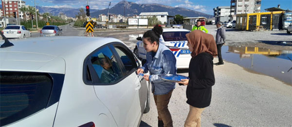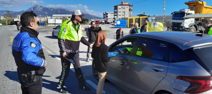 Projenin ikinci etabında Anamur İlçe Emniyet Müdürlüğü ile birlikte araç kokuları, trafik polisleri nezaretinde yol uygulamasında araç sürücülerine dağıtıldı..