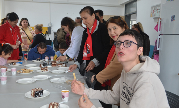 Engelli çocuklarla yakından ilgilenen Cumhuriyet Halk Partisi Anamur İlçe Kadın Kolları Başkanı Elvan Tüfenk ve yönetim kurulu üyeleri, çocuklara pasta ve börek ikram etti.