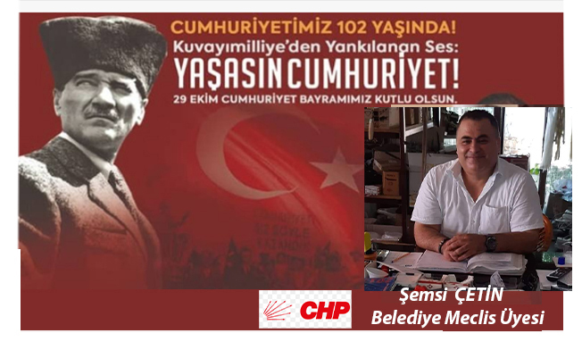 CHP Anamur Belediye Meclis Üyesi,iş insanı Şemsi Çetin, 29 Ekim Cumhuriyet Bayramının 102.yıl dönümü nedeniyle bir mesaj yayınladı.