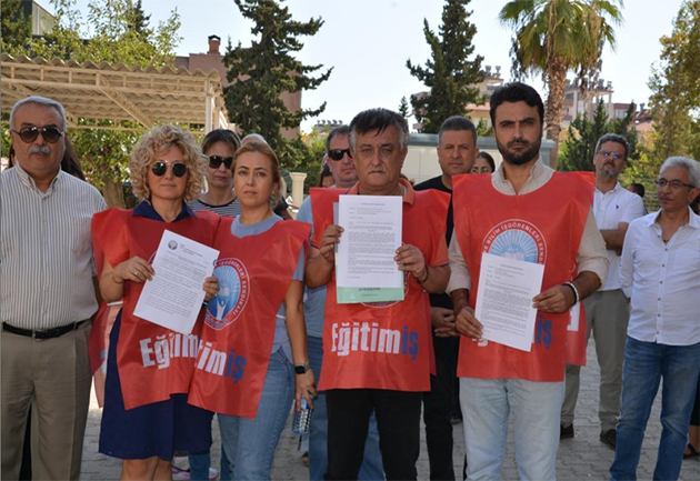 Basın açıklaması yapan Eğitim İş Anamur Temsilciliği,