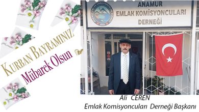 Anamur Emlak Komisyoncuları Derneği Başkanı Ali Ceren, Kurban Bayramı nedeniyle bir açıklama yaparak,Bayramların barışın ve kardeşliğin sembolü olduğunu söyledi. Anamur…