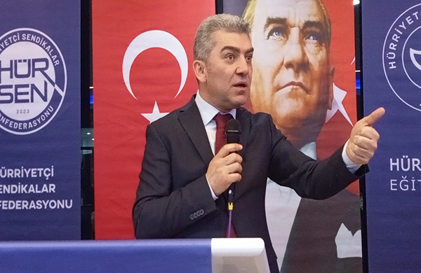 Hürsen Konfederasyonu Genel Başkanı Levent Kuruoğlu da konuşmasında, sendikalarının üç yıl gibi kısa bir sürede 50 bin üyeye ulaştığını belirterek, şeffaf yönetim anlayışı ve mali hesap verilebilirliğin önemine dikkat çekti. Sarı sendikaların memurların sorunlarına çözüm getirmediğini vurgulayan Kuruoğlu, sendikalarının siyasetten bağımsız bir çizgide hak mücadelesine devam edeceğini ifade etti.