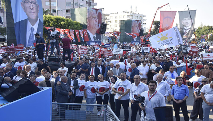 Kardeşlerim. O kadar doymaz, o kadar yetinmez haldeler ki, hiçbir yetki bunlara yetmiyor, milletin hiçbir tercihi umurlarında olmuyor, uyarılara aldırmıyor, eleştirileri umursamıyorlar. Ama emin olun, korkuyorlar, ‘Yeter artık’ diyenlerden korkuyorlar. O kadar çok korkuyorlar ki, hürriyet diyen, Cumhuriyet diyen, ne mutlu Türk’üm diyenlerden, işçiden, emekliden, gençlerden, kadınlardan, senden, benden, biz olmamızdan korkuyorlar. Sanıyorlar ki, ‘başarılıyız’ dediklerinde, beceriksizlikleri görülmeyecek. ‘Yaptık ettik diye reklam yaptıkça’, o kumdan kaleleri ayakta kalacak. Seçimle kazanamadıklarını, gasp ettiklerinde, muzaffer olacaklar, eğip büktüklerinde, adil olacaklar.