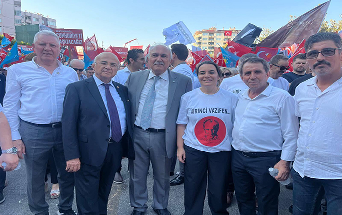 Uluslararası görüşmeleri sadece ticaretten ibaret sayıp, 70 milyar metre küp sıvılaştırılmış gaz, 300 tane uçak almayı taahhüt edenlerden değiliz. Biz, F16, F35, S400 konusu ne oldu diye soranlarız. Filistin, Gazze, Kıbrıs, Mavi Vatan ne oldu diye merak edenleriz. Suriye’nin kuzeyinde YPG-PYD varlığı ne olacak diye sorgulayanlarız. Heybeliada Ruhban okulu açılacak, Fener Patriği ekümenik mi olacak kaygısını taşıyanlarız. Ayrıca biz, Cumhurbaşkanı Sayın Erdoğan’ın söylediği her sözün ülkemiz açısından bağlayıcı olduğunu ama Sayın Trump’ın sözlerini yerine getirmesi için kongrenin ve senatonun denetimine tabi olduğunu bilenler ve onun için parlamenter demokrasi isteyenleriz. Bizim için meşruiyet Türk milletinin yüreğinin attığı Mersin meydanıdır. Buradan yükselen ses, Türk milletinin gür sesidir. Burada birleşen gönüller, Türk milletinin yüce gönlüdür.”