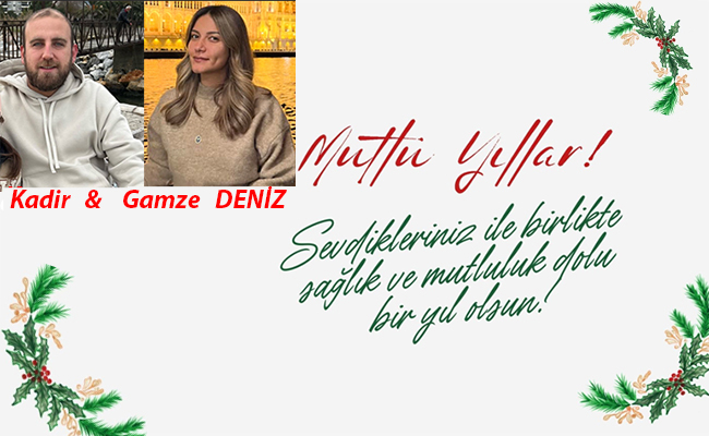 Ziraat Mühendisi Gamze& Kadir Deniz çifti; 2026 yılının Türkiye’ye ve tüm dünyaya sevgi, barış ve refah getirmesi dileğinde bulundu.