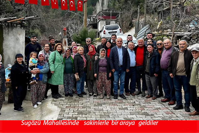 CHP Anamur İlçe Başkanı Arif Çakırcı, İlçe Yönetim Kurulu Üyeleri, Kadın Kolları Başkanı Elvan Tüfenk, Gençlik Kolları İl Başkan Yardımcısı Gültekin Tatar ve Gençlik Kolları Başkanı Güven Bulut’un da eşlik ettiği ziyaretlerin ilkini Sugözü Mahallesine yapan Büyükşehir Belediyesi Anamur , Bozyazı, Aydıncık Siyasi Koordinatörü Erdal Karan,mahalle muhtarı Kasım İbrahim Cedit ve mahalle sakinleri ile yapılan toplantıda, mahallelerin sorunlarını giderme noktasında üstün bir çaba gösterdiklerini söyledi.
