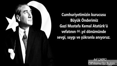 Cumhuriyet Halk Partisi Anamur İlçe Başkanı Arif Çakırcı, Türkiye Cumhuriyeti’nin kurucusu Gazi Mustafa Kemal Atatürk’ün aramızdan ayrılışının 86. yılı dolayısıyla…