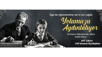 CHP Anamur İlçe Başkanı Arif Çakırcı,24 Kasım öğretmenler günü nedeniyle yayınladığı mesajında,” Ülkemizi ve milletimizi aydınlık yarınlara taşıyacak nesiller yetiştiren…