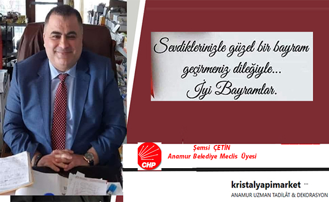Cumhuriyet Halk Partisi (CHP) Anamur Belediye Meclis Üyesi Şemsi Çetin, Ramazan Bayramı nedeniyle mesaj paylaştı.