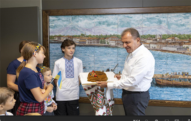 Mersin Ukrayna Yardımlaşma ve Dayanışma Derneği Başkan Yardımcısı Ludmila Ardıç, dernek üyeleri ve çocukları, Mersin Büyükşehir Belediye Başkanı Vahap Seçer’i ziyaret etti.