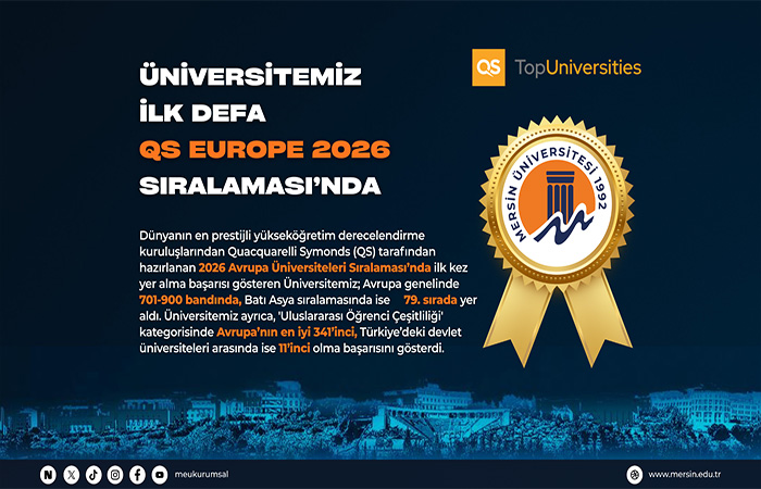 Mersin Üniversitesi sadece Mersin ve bölgenin değil, dünyanın sayılı bilim merkezlerinden biri haline getirme hedefiyle çalıştıklarını belirten Mersin Üniversitesi Rektörü Prof. Dr. Erol Yaşar, “Bugün, dünyanın en saygın sıralama kuruluşlarından QS’in 2026 Avrupa Listesi’ne ilk kez girmiş olmamız, bu stratejik hedeflerimizin hayata geçtiğinin en açık göstergesidir. Özellikle ‘Uluslararası Öğrenci Çeşitliliği’ alanında Avrupa’da 341. sırada yer almamız tesadüf değildir. Bu, kampüsümüzü bir dünya üniversitesine dönüştürme irademizin, uluslararası öğrencilerimize sunduğumuz imkânların ve oluşturduğumuz hoşgörü ikliminin uluslararası arenada tescil edilmesidir. QS listesinde yer almak bizim için bir varış noktası değil, daha büyük başarılar için güçlü bir başlangıçtır. Araştırma kalitemizi artırarak, proje tabanlı çalışmaları destekleyerek ve mezunlarımızın istihdam gücünü yükselterek bu sıralamalarda kalıcı olacağız ve daha üst basamaklara tırmanacağız. Bu gurur tablosunun mimarı olan kıymetli akademisyenlerimize, idari personelimize ve başarılarıyla bizleri yücelten sevgili öğrencilerimize teşekkür ediyorum.” dedi.