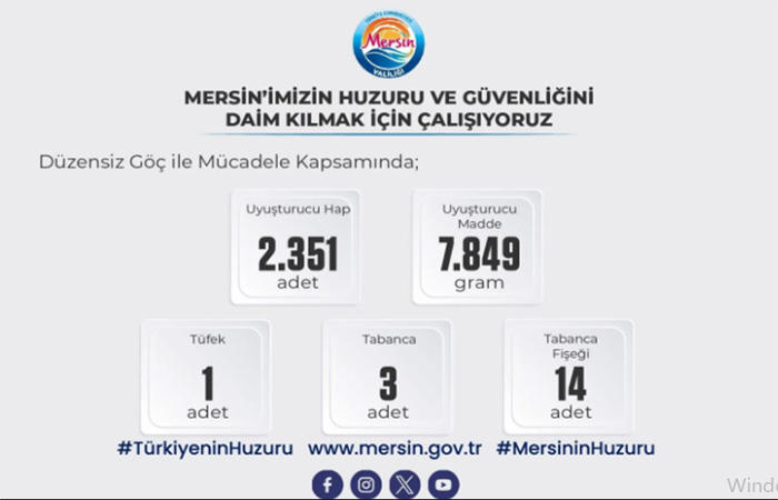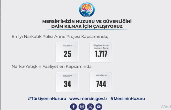 Toplumsal Bilinçlendirme Faaliyetleri Sürüyor Mücadelenin sadece operasyonel değil, eğitim ayağında da aktif rol alan ekipler, “En İyi Narkotik Polisi Anne” projesi kapsamında 1.717 anneye ulaştı. Narko-yetişkin faaliyetleri çerçevesinde ise 744 kişiye bilgilendirme sunumları yapılarak, uyuşturucuyla mücadelede sivil katılımı artıran “Narvas” ve “Uyuma” projeleri tanıtıldı. Yetkililer, Mersin’in huzuru için hem sahada hem de eğitim alanında çalışmaların kararlılıkla süreceğini belirtti.
