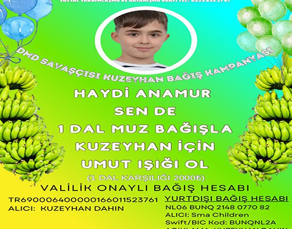 Anamur halkı, dayanışmanın en güzel örneklerinden birini sergileyerek bir çocuğun yaşamına umut olmak için adım attı. “Bir Dal Muz” kampanyasıyla hem bölgenin sembol ürünü değerlendirilmiş olacak hem de Kuzeyhan’ın yaşama tutunma mücadelesine katkı sağlanacak.