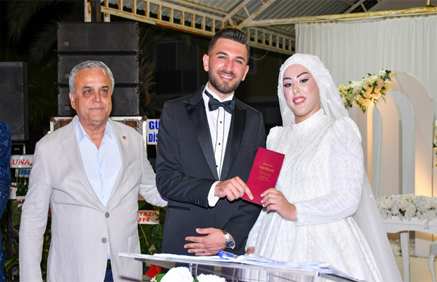 CHP Mersin Milletvekili Hasan Ufuk Çakır’ın şahitliğinde, kendilerini birbirlerine ömürlük bağlayan imzayı atan çifte mutluluklar dileyen, şahitler evliliğin sevgi, saygı ve anlayış çerçevesinde birleştiğine işaret ederek, çiftin mutluluğuna da ortak oldular.