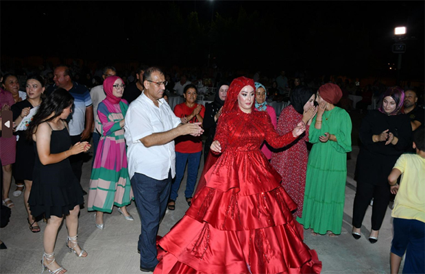 Düğünden önce Yıldız düğün salonunda geniş katılımlı yapılan kına gecesinde Güzel ve Aydın ailelerinin akrabaları ve dostları gönüllerince eğlendiler.