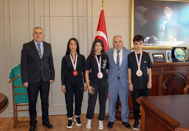 Diyarbakır’da düzenlenen Türkiye Kickboks Şampiyonası’nda önemli dereceler elde eden sporcular, Kaymakam Kemal Duru’yu makamında ziyaret etti.