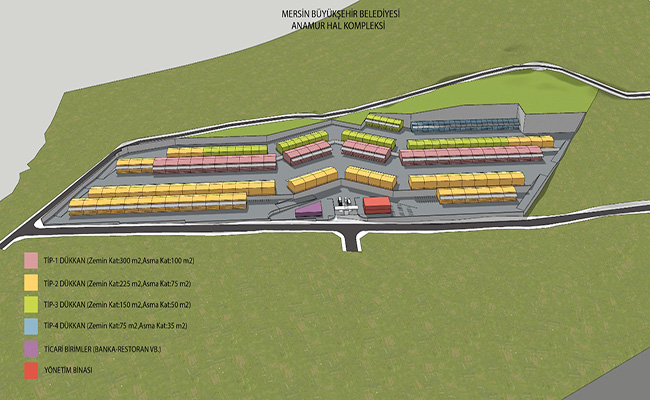 Avan projesi hazır olan Anamur Yaş Sebze ve Meyve Hali’nde 3 farklı tipte toplam 106 dükkanın yer alması planlanıyor. Proje alanında hafriyat çalışmaları tamamlanarak arazi inşaata hazır hale getirildi.