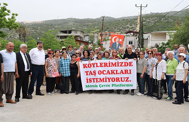 Taş ocağı tehdidine karşı köy meydanında toplanarak eylem yapan mahalle sakinleri ve çevreci vatandaşlar, ellerinde döviz ve pankartlarla slogan atıp; “Toprağıma, havama, suyuma dokunma. Köylerimizde Taş Ocakları istemiyoruz” mesajı verdi.