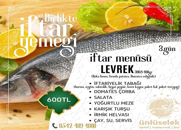 Ramazan ayı boyunca Ünlüselek Restaurant’ta her gün değişen lezzetlerle dolu bir iftar menüsü sizi bekliyor!