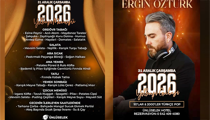 Ünlüselek, 2026’ya keyifli müzikler, eğlence ve eşsiz lezzetler eşliğinde merhaba demek isteyen herkesi yılbaşı gecesine davet ediyor.