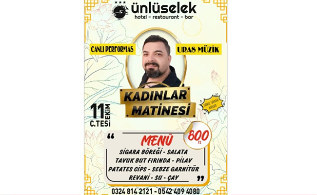 Anamur’un gözde mekânlarından Ünlüselek Restoran, 11 Ekim Cuma akşamı düzenleyeceği özel etkinlikle yaz mevsimine veda etmeye hazırlanıyor. Anamur halkına unutulmaz bir akşam yaşatmayı hedefleyen restoran, “Sonbahara Merhaba” konseptiyle sezonun son açık hava etkinliğine imza atacak.