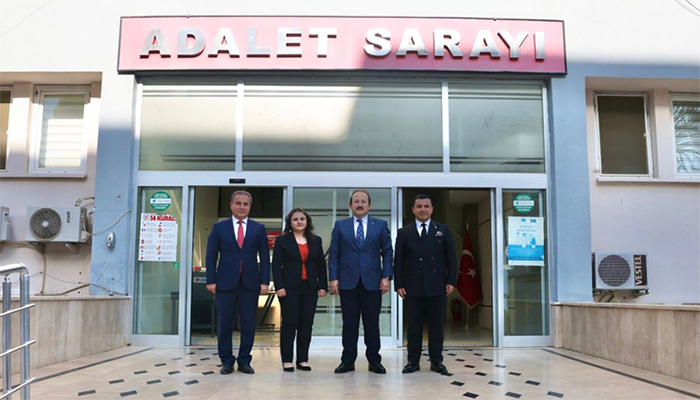 Vali Pehlivan, Adliye ziyaretinde Anamur Cumhuriyet Başsavcısı Tanju Çatlı ve Anamur Ağır Ceza Mahkemesi Başkanı Süreyya Topaloğlu ile görüştü.